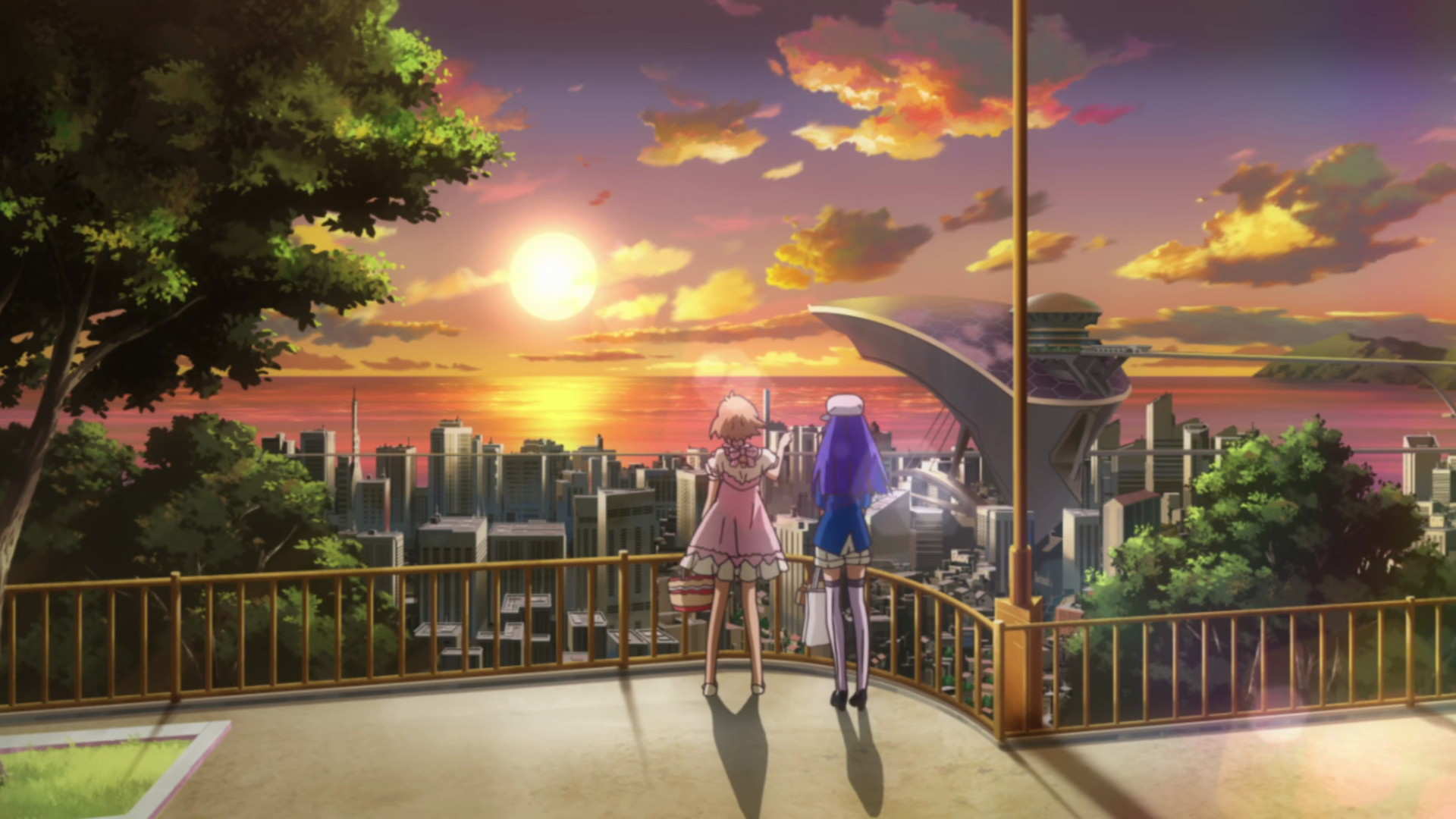 As their trip comes to an end, Tsubasa realizes that this is the world that Kanade saw. One of just normal fun outings with friends beyond the pains and struggles of war against the Noise. Hibiki agrees, but reminds Tsubasa that the peaceful city vista before them would not even exist if Tsubasa hadn’t fought to hard for it. Tsubasa make the decision to return to her singing career and gives Hibiki and Miku tickets to her next event.