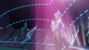 In the end, Tsubasa admits to her audience how much singing means to her and asks them if they’ll allow her to expand abroad and bring her songs to more and more people. She is delighted when they give her a cheer of support. Tsubasa is finally back where she is meant to be… Meanwhile, Chris is alone back in an alley confused as to why she helped Hibiki fight the Noise.