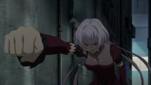 While it’s not really spoken, we see Chris struggling at the end with the reality of her wish to bring peace to the world through strength and violence. Mostly, we see that Chris is distraught and confused because Finé taught her she needed to have no friend and get no help from others… and yet during her big battle with the Noise not only did she fight alongside Hibiki who believes fighting is a last resort, Chris actually helped Hibiki out in a couple of instances and got help in return. Chris is dealing with a bad worldview that has been shattered by Hibiki’s good actions. And she hasn’t quite made it through those struggles yet.