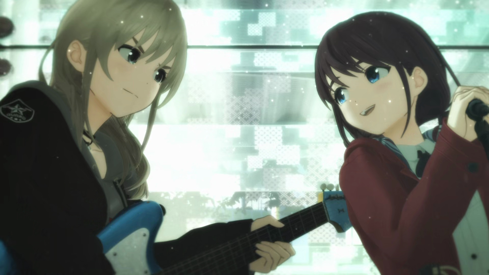 Girls Band Cry is a 3d CGI production, meaning most everything except the rare one off background character is done as computer animation. While the show generally lacks the overwhelmingly rich level of foreground and background detail something like a full blown Disney/Pixar movie has, Girls Band Cry does have its own strengths that become more apparent the more you watch. The show features a smooth, constant, 24 frames per second rate of animation. A lot of hand-drawn and CGI anime updates less frequently where Girls Band Cry updates the movements of its camera and characters every frame. In practice what this mean is every scene has something happening. Every character movement is smooth and detailed. From big sweeping gestures to the show’s frequent use of highly expressive facial reactions, everything is snappy and fluid in ways you might not expect from most 3d productions. Or from most traditional, hand-drawn anime for that matter.